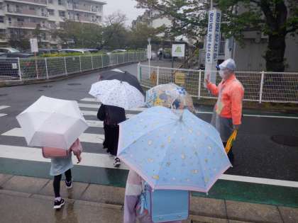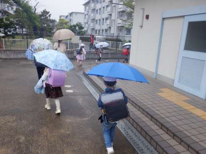 雨の日は、傘で見える範囲が狭くなるので気をつけて帰りましょう。