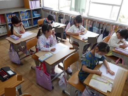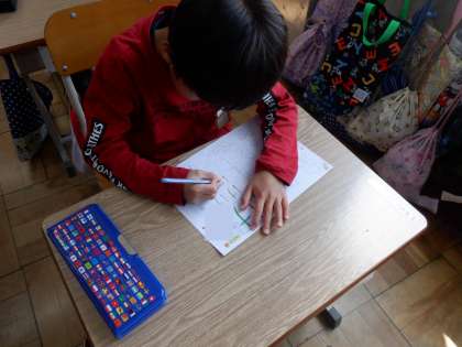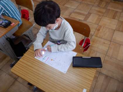 国語の授業の様子です。今日は「さ」と「け」を学習しました。ワークシートに書く自分の名前も上手になってきました。
