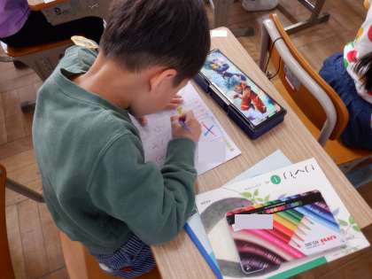 国語の授業で平永の学習をしていました。整った字を書くために良い姿勢や鉛筆の持ち方にも注意して取り組んでいました。