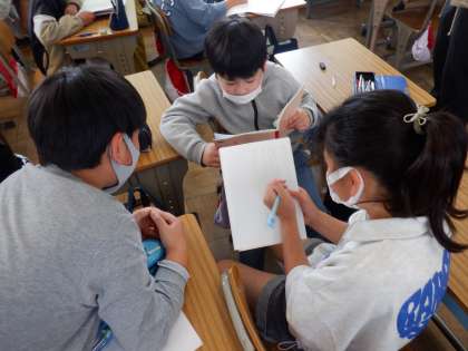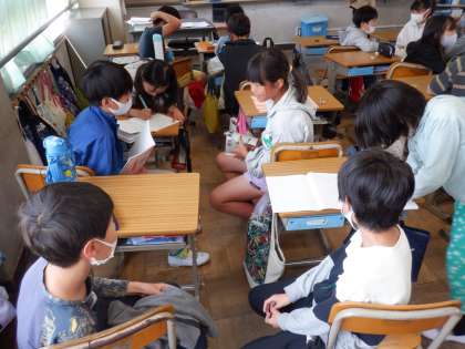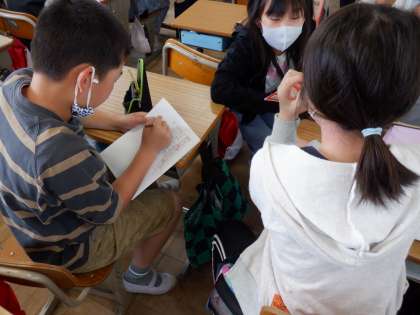 国語の授業の様子です。決められた時間内に友達に質問をしていました。質問をしながらメモを取っています。次の時間には質問した内容をまとめて、クラスで発表するそうです。