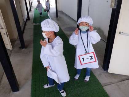 1年生も給食当番に慣れてきました。