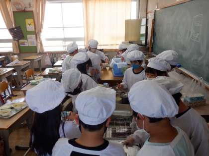 4年生の給食準備はとてもスムーズです。