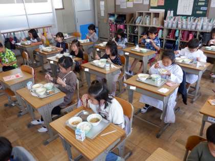 2年生はしっかり給食を食べています。