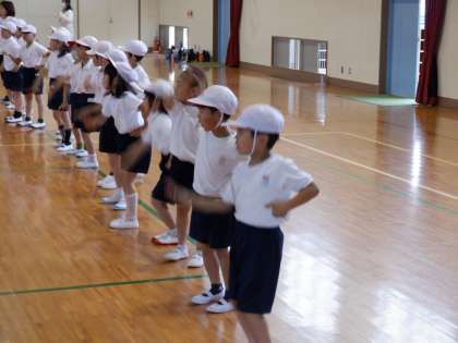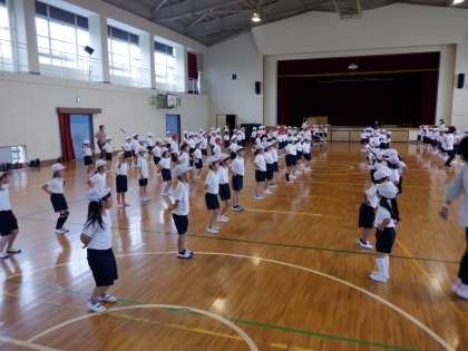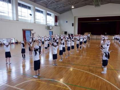 今日は体育館で体育大会の演技の練習をしました。ずいぶん動きが良くなってきました。