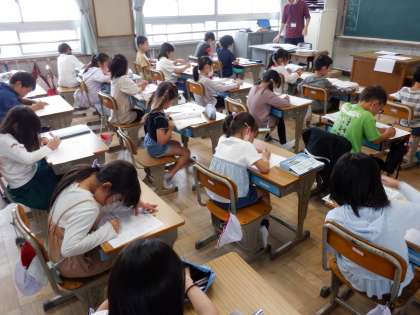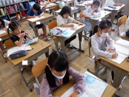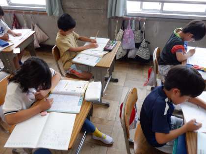 算数の授業の様子です。これまで学習した内容の定着度を確認するために補習問題や問題プリントをしていました。
