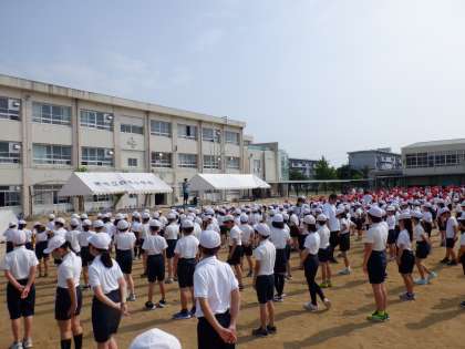 今日は朝から1時間目にかけて体育大会の全体練習を行いました。整列場所の確認や体操の練習をみんなで行いました。
