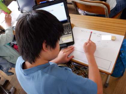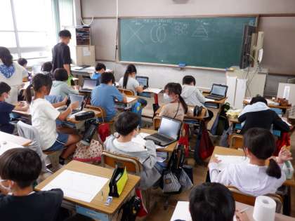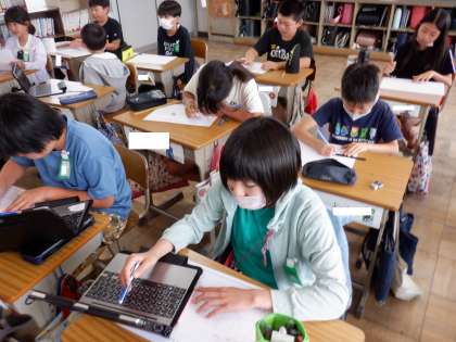 特活の時間に「思考ツール」を使ってあるテーマに対する自分なりの理論を考え出しています。今後、総合学習や社会などの授業で活用するために、練習をしていました。