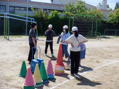 体育大会に向けて児童係の打ち合わせをしました。6年生が担当する役割を本番さながらに練習をしました。