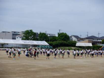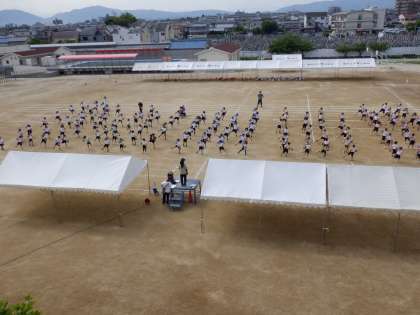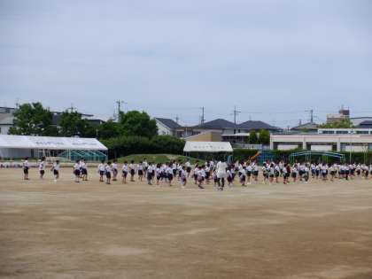 体育大会の練習の様子です。きらきらのポンポンをもってダンスの練習をしています。自分の移動場所もわかって自信を持って踊っています。