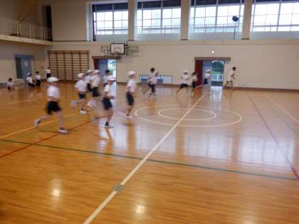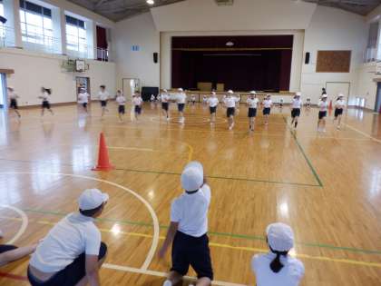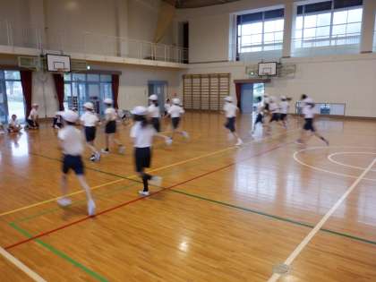 新体力テストの一つ、「シャトルラン」を学年で取り組んでいました。