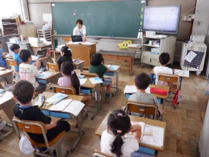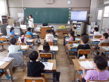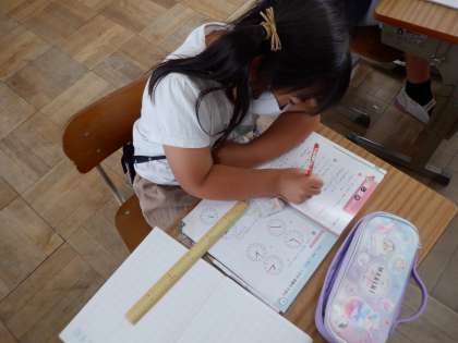 算数の授業の様子です。「長さ」の学習の確かめ問題に挑戦しています。