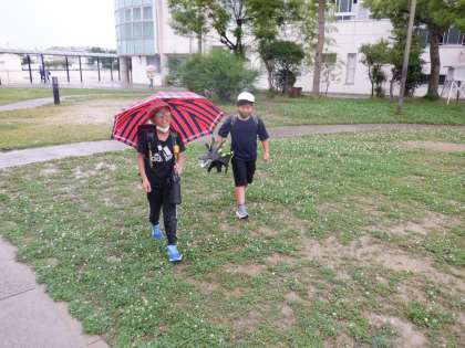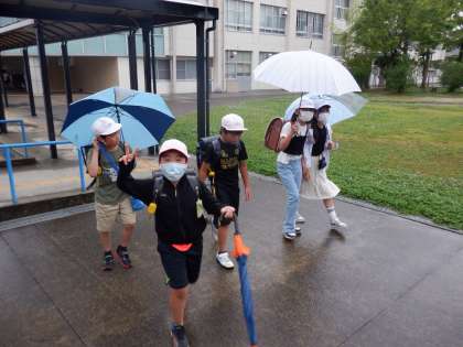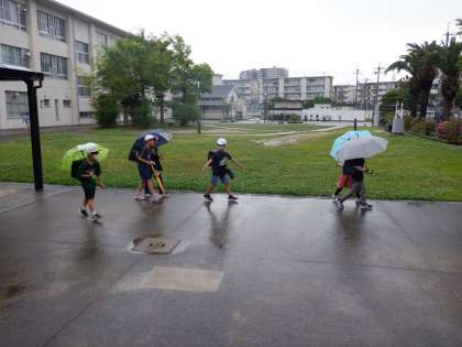 下校時刻には雨が降っていました。明日は天気が回復する予報です。早く運動場が使えるといいですね。