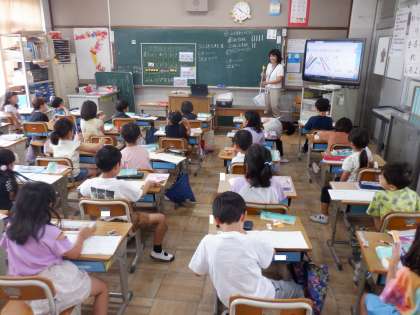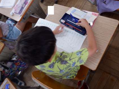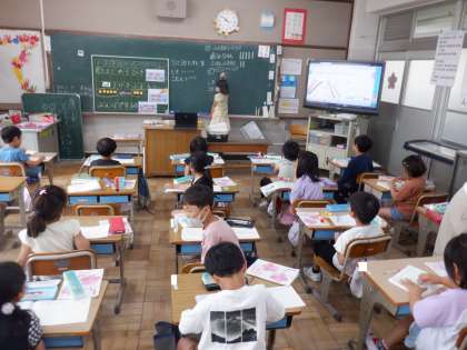 算数の授業の様子です。たし算の学習に入っています。みんなで式を確かめながら学習していました。