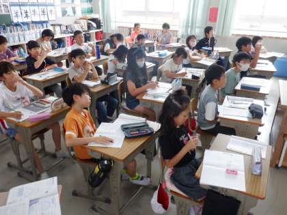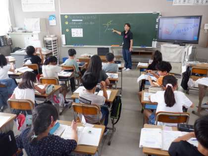算数の授業の様子です。180度より大きい角度のはかり方を考えました。