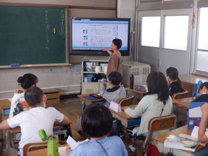 国語の授業の様子です。「みんなが過ごしやすい町」についての報告文を読んで、気付いたことなどを交流しています。気付いたことや気になったことを生かして、テーマに相応しい報告文を作りましょう。