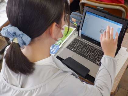 理科の授業で学んだことをタブレットを使って学習の振り返りや確認をしています。