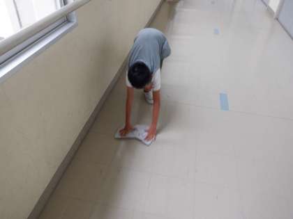 校舎の2階では、2年生と4年生が掃除をしてくれています。いつも丁寧に掃除をしてくれてありがとうございます。今日も頑張っています。