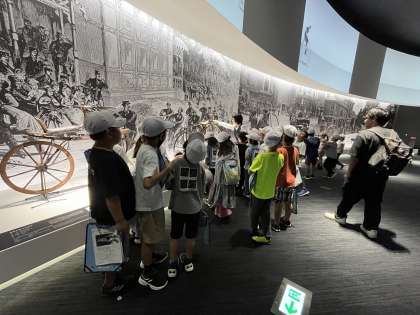 シマノ自転車博物館に行ってきました。自転車の歴史に興味津々の様子でした。博物館の方の話もしっかりと聴いていました。新しく知ったことがたくさんありましたね。