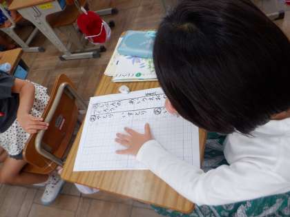 今日の3時間目は、国語の授業です。「あいうえおで あそぼう」をもとに、自分でことばを組み合わせて、詩を作りました。みんなでどんな詩ができたか楽しみです。
