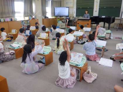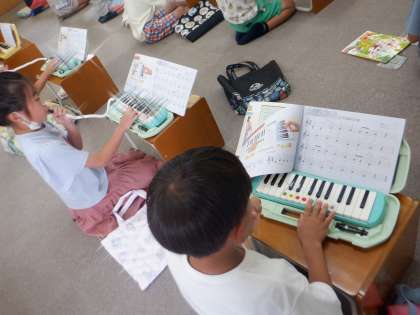 今日の3時間の授業は音楽です。来月の7月7日は七夕です。今日は、「七夕」の曲を音階で歌ったり、鍵盤ハーモニカで弾いたりしました。指を広げて弾くところや指を狭くして弾くところが所々にあり、とても難しそうでしが、頑張ってチャレンジしました。