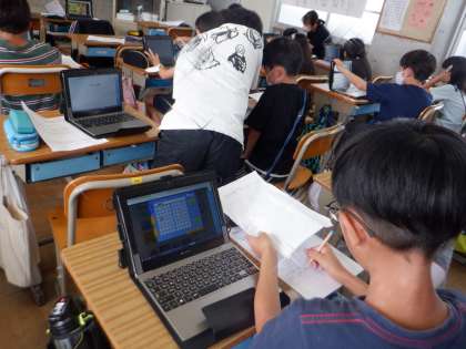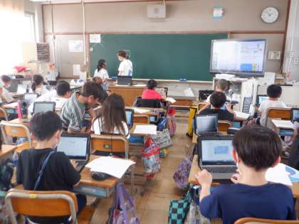 5時間目の授業は、総合的な学習の時間です。校区のことについて、インターネット等を活用し調べ学習をしています。自分が調べたい施設や建物等を選んでいます。発表が楽しみですね。