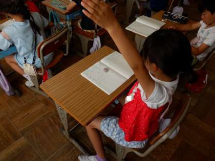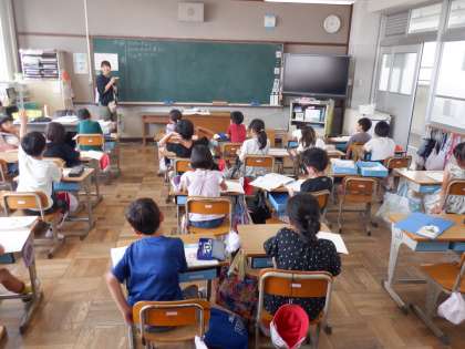 算数の授業の様子です。10を単位にしたたし算やひき算の仕方を考えています。考えたことをしっかりと発表していました。