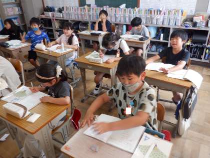 算数の授業の様子です。整数と小数の相互関係について考えました。
