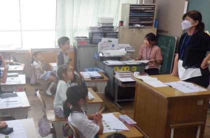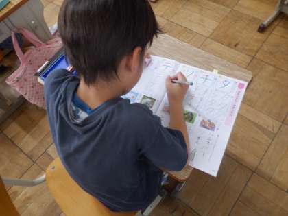 書写の先生にカタカナを教わりました。今日はタ行を学習しました。言葉探しではカタカナで表す言葉をみんなで探しました。