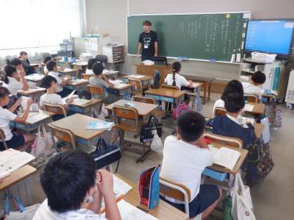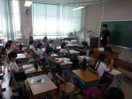 国語の授業の様子です。「ちいちゃんのかげおくり」を読んで感想を交流しています。「ちいちゃんのかげおくりは○○○○な物語」と課題を設定して、どんな言葉が適当か、感想の交流を通して考えました。まずは物語の内容を大まかにとらえようとしています。