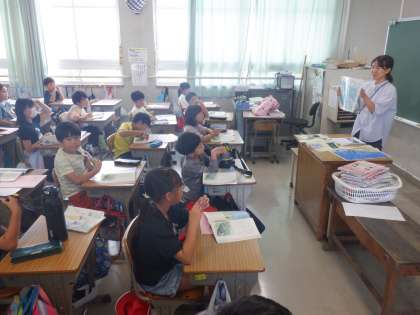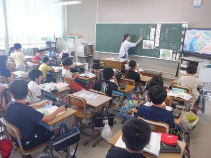 道徳の授業の様子です。今日は2組の担任が、1組で授業を行いました。