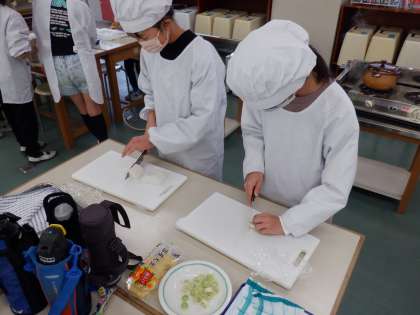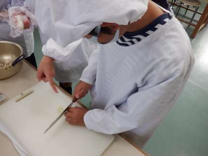 みそ汁に入れる具材を上手に切っていました。出来上がりが楽しみです。