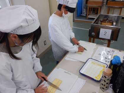 家庭科の授業の様子です。今日は調理実習を行いました。ごはんとみそ汁を作ります。