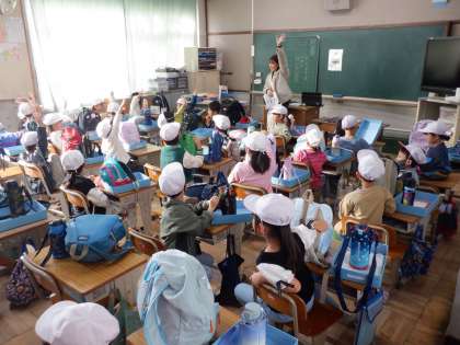 1年生が校外学習に出発しました。小学校で2回目の校外学習です。とても張り切っていました。