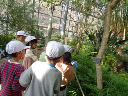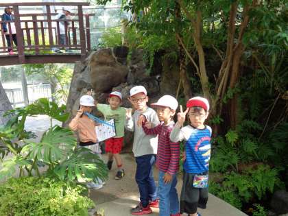 緑化植物園では、グループで植物園クイズに挑戦しました。植物園の中を行ったり来たりしなが友だちと答えを探していました。