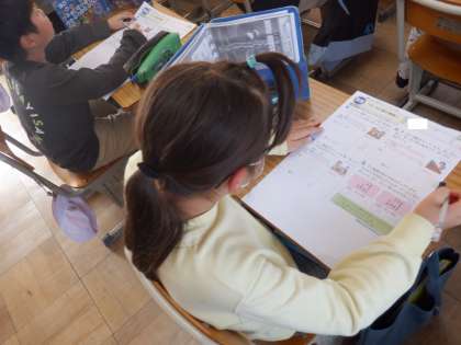 かけ算のひっ算について評価テストをしました。2位数や3位数に1位数をかけるかけ算について、ひっ算で計算する技能の習熟程度を確認しています。