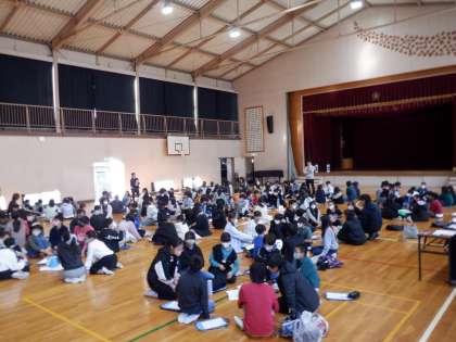 中百舌鳥小学校の6年生と「にんげん学習交流会」をおこないました。学習を通して、人権や部落問題について学び、どうすれば人権が守られ、差別がなくなるのか、しっかりと考えることができました。また、交流会では様々な考えにふれ、自分の考えを広げたり深めたりすることができました。