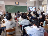 外国語の授業の様子です。好きなスポーツ選手のことを英語で紹介しました。みんなの前で堂々とスピーチしています。