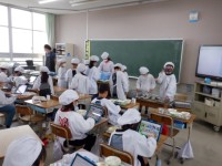 理科の授業の様子です。今日は、植物のヘチマの観察をしました。ヘチマの実や葉っぱに触れたり、ヘチマの実の硬さを確かめたりしながらヘチマの変化を観察しました。