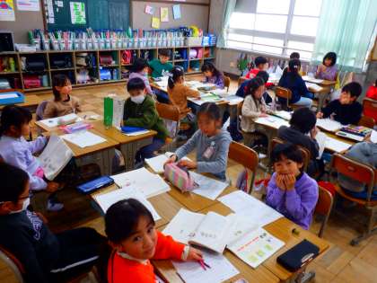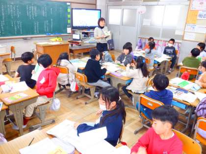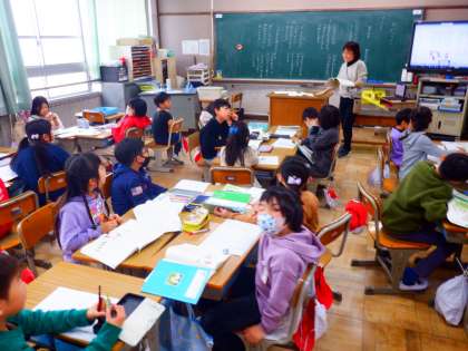 国語の授業の様子です。「おにごっこ」を読んで、遊び方やその面白さについてワークシートに書き出しました。文章に書いていることを整理して、大事なことを読みとろうとしています。