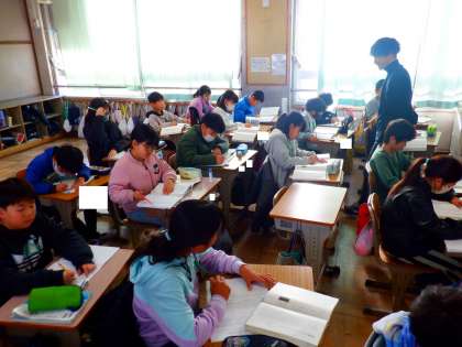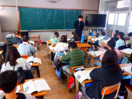 国語の授業の様子です。文章を読んで初じめの感想を書いていました。感想には文章の内容だけではなく、表現の工夫や文章の構成についても感じたことを書いています。