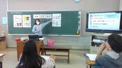 中百舌鳥小学校の栄養教諭の先生が,6年生に「オリジナル弁当を考えよう」の授業をしてくださいました。