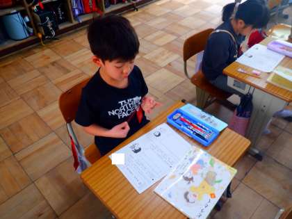 道徳の授業の様子です。最後まで頑張るにはどうしたらいいのかを考えました。