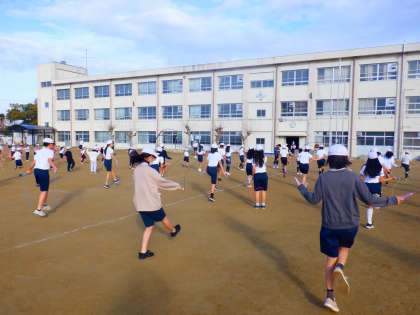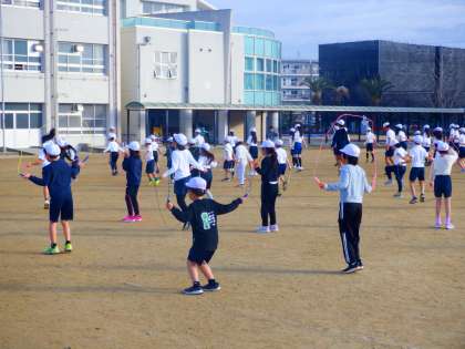 今日は2,4,6年生がなわとび集会を行っています。いろいろな跳び方を習っていました。最後は音楽に合わせてみんなで連続とびに挑戦です。