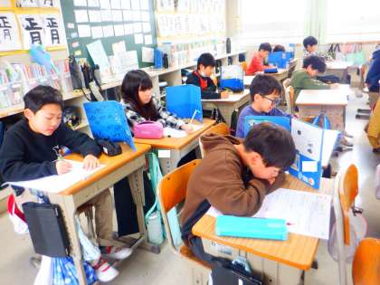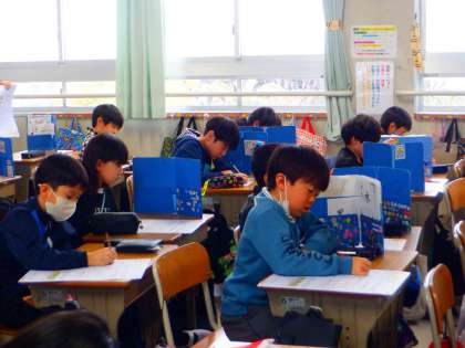 算数のテストの様子です。今日は、□を使った式のテストです。テストが配られたら、問題をしっかり読んで、解いています。見直しをして、最後まで頑張ってくださいね。