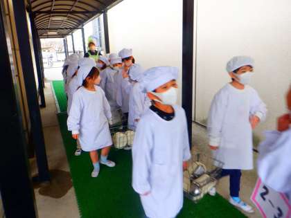 給食当番さん、今週もよろしくお願いします。今日はみんなの大好きなだいずクリームです。しっかり食べてくださいね!!