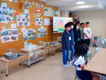 食べ終わってからは、一緒に片づけをしています。そして、みんなでごちそうさまをしました。「おいしかったです。」と感想をもらいました。