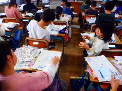 2月19日(月)3年生「版画〜とび箱をとんでる様子〜」☆彡