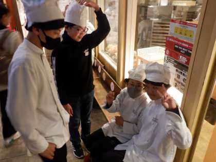 キッザニアの建物の中ではグループで行動しました。体験する仕事の順番など、相談して決めました。