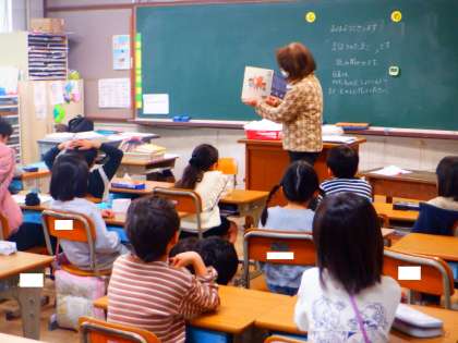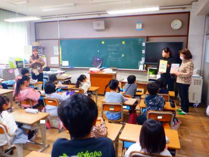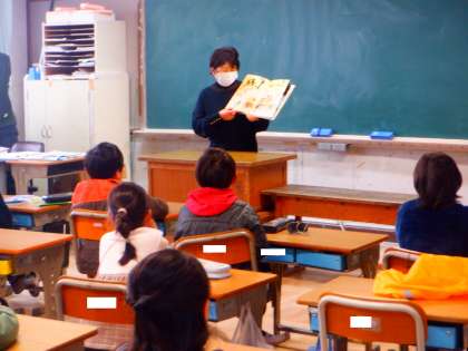朝の学習の時間に、まほうのたまごさんによる読み聞かせをしていただきました。今日は、「はっきょいどーん」と「おどるカツオブシ」の2冊の本を紹介してもらいました。読み終わってから「お好み焼きの時にカツオブシを見てみるよ。」と話している児童がいました。