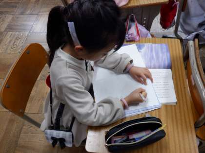 国語の授業の様子です。馬頭琴を作る「スーホ」の様子を読みとろうとしています。